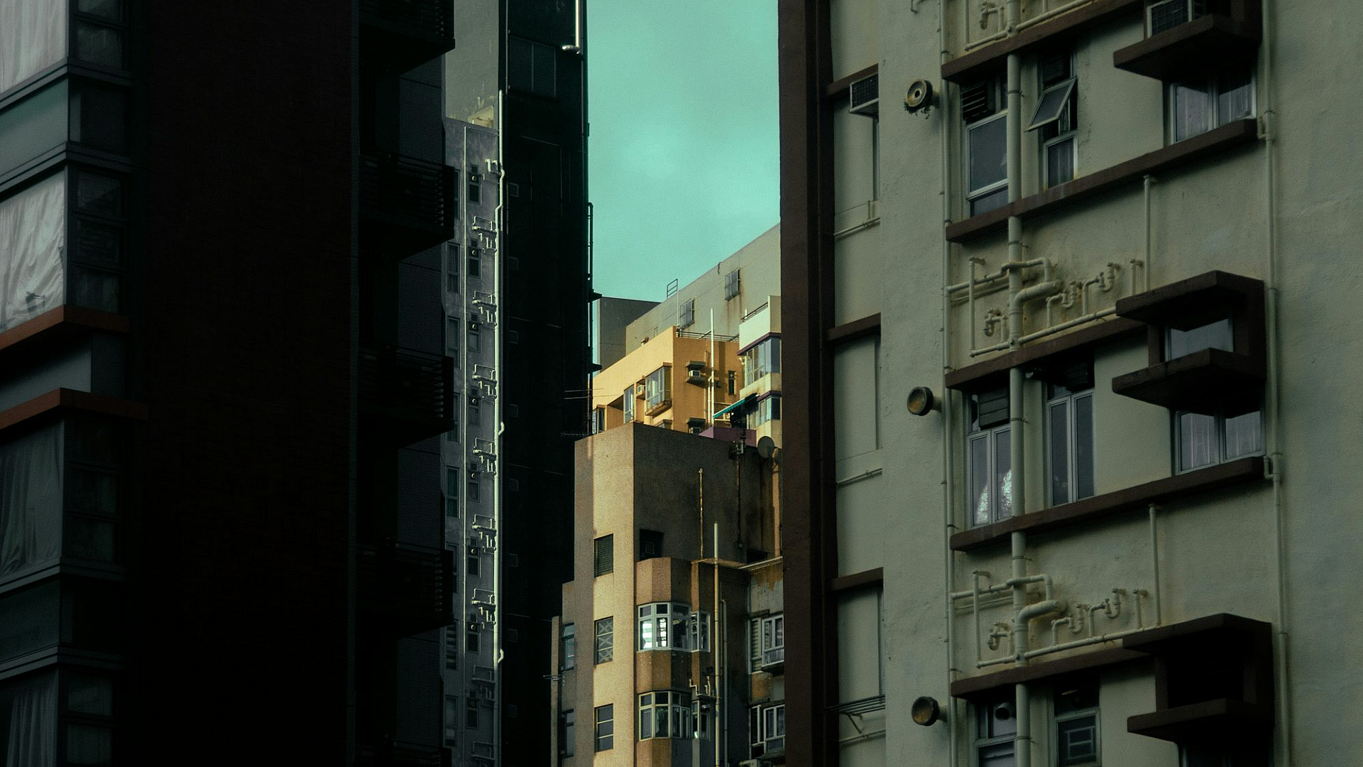 This wallpaper features a stunning image of two tall buildings standing side-by-side, showcasing impressive architecture and a dramatic cityscape.
