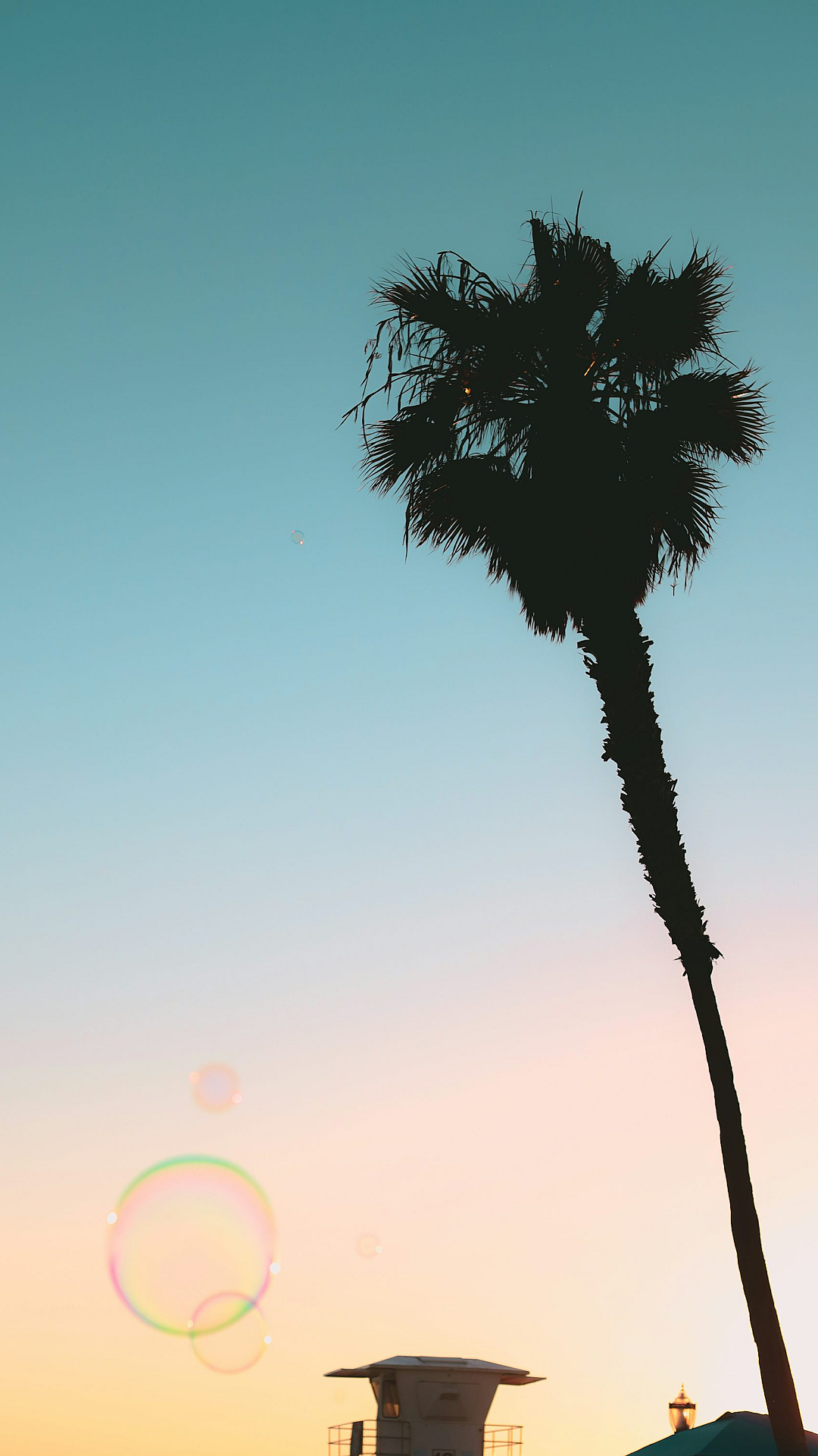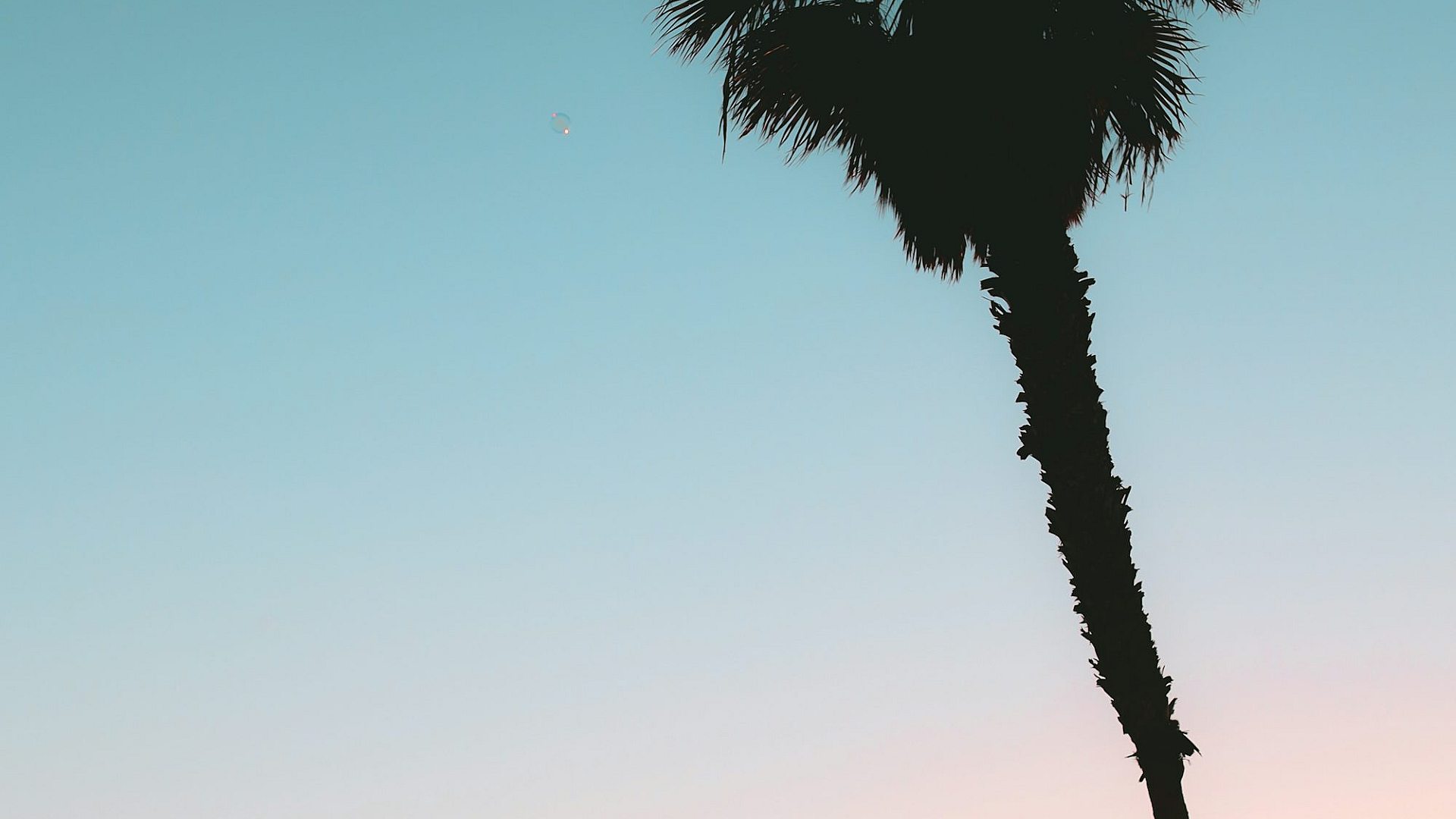 This wallpaper features a striking contrast between a lush palm tree and a modern building, representing the blend of nature and urban landscapes. A perfect blend for a modern aesthetic.