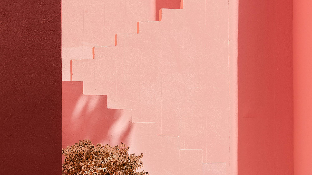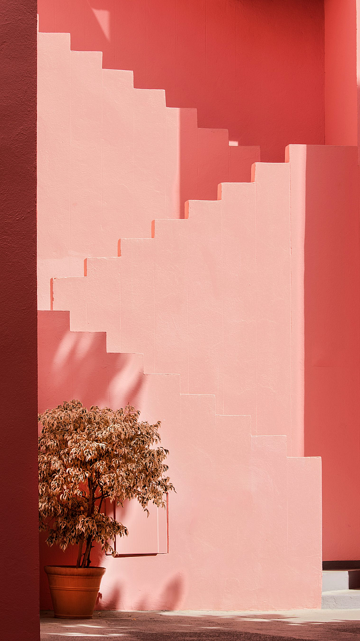 pink building, potted plant, building wallpaper, pink wallpaper, architecture wallpaper, floral wallpaper, plant wallpaper, pastel wallpaper, building facade, pretty wallpaper