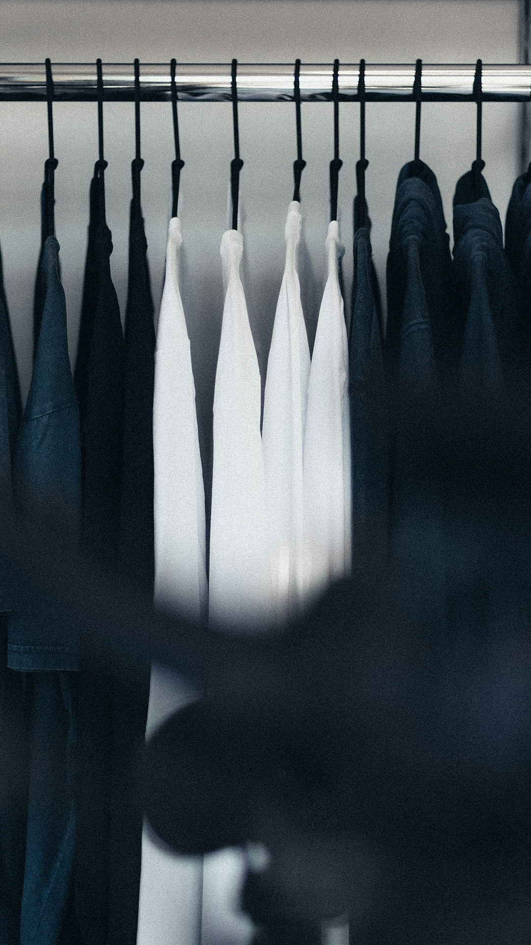 A stylish wallpaper featuring a neatly organized rack of clothes, showcasing various fabrics and styles. Perfect for fashion lovers and those seeking a clean, organized aesthetic.