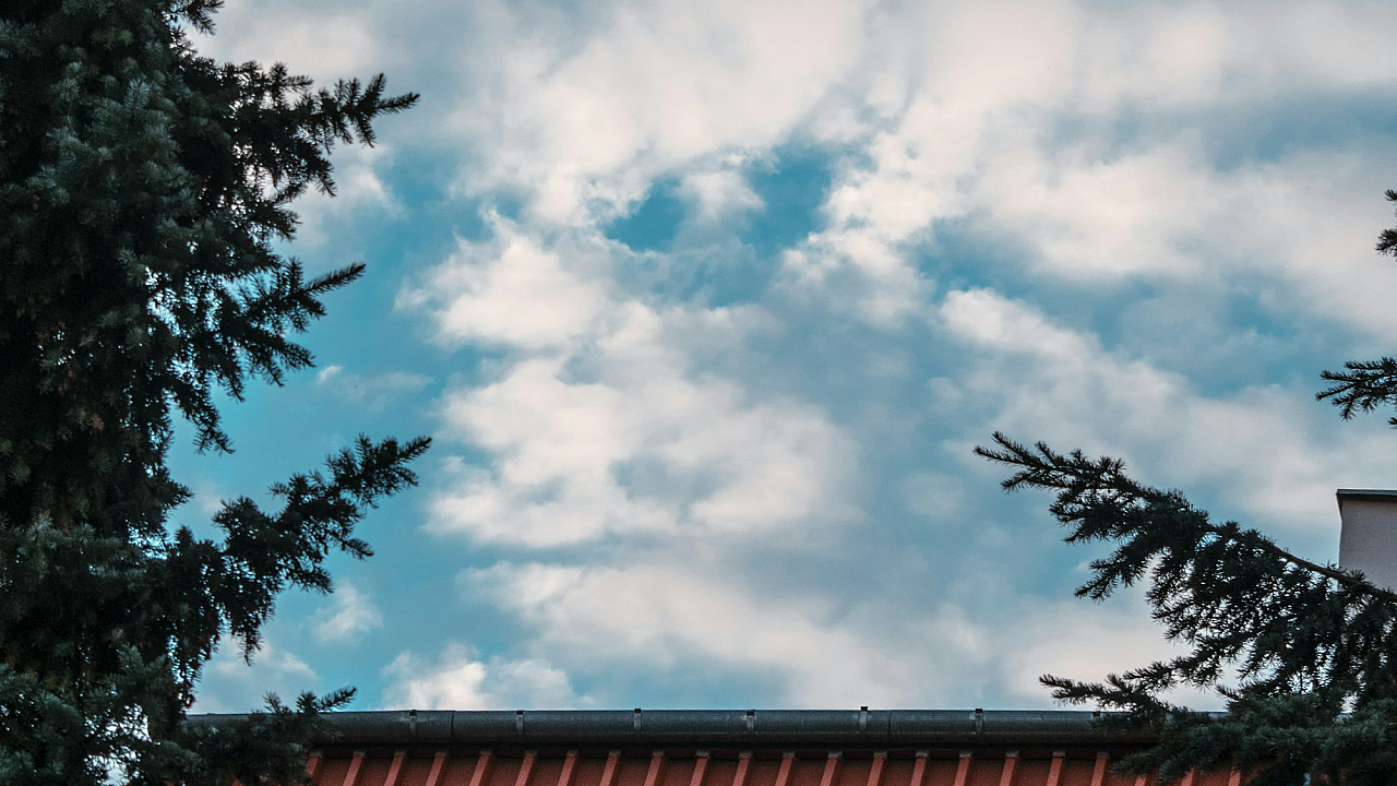 A picturesque wallpaper featuring a charming red house nestled amongst lush green trees. Perfect for a calming and peaceful desktop or mobile background.