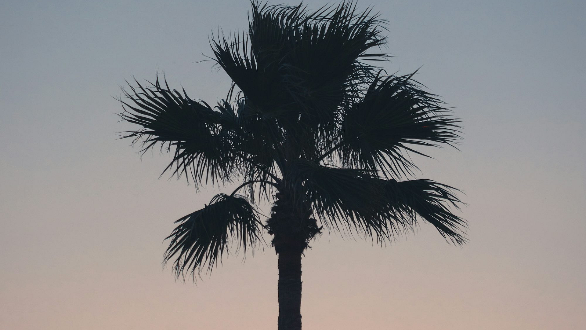 A serene image depicting the silhouette of a palm tree set against a vibrant sunset sky. Perfect for a relaxing and tropical vibe.