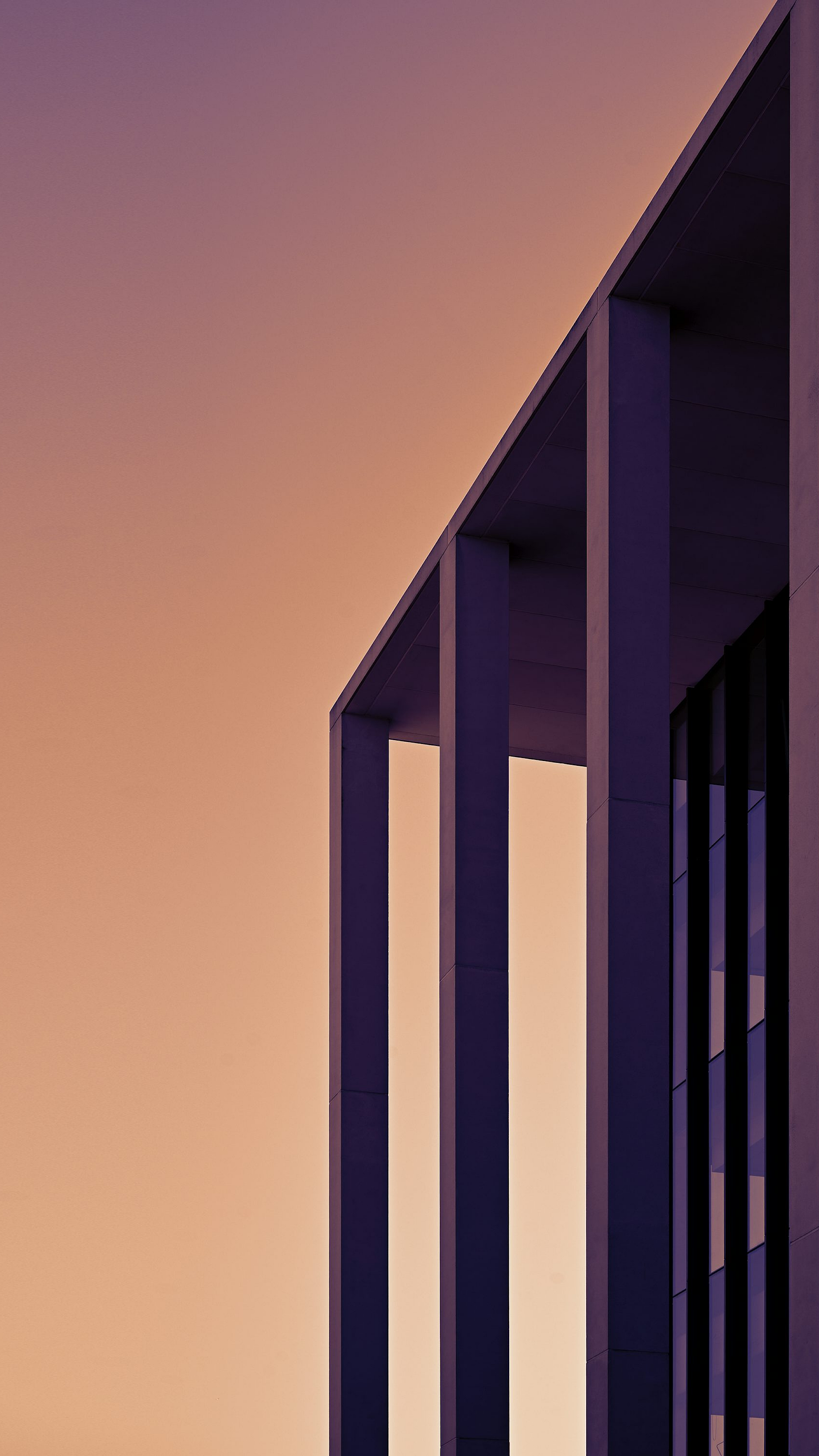 A striking contrast between the imposing height of a modern building and the diminutive parking meter below. A perfect urban wallpaper.