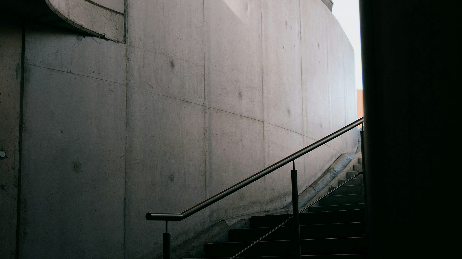 black metal staircase, white concrete wall, architecture wallpaper, modern wallpaper, industrial wallpaper, dark wallpaper, minimalist wallpaper, stairs wallpaper, metal wallpaper, concrete wallpaper