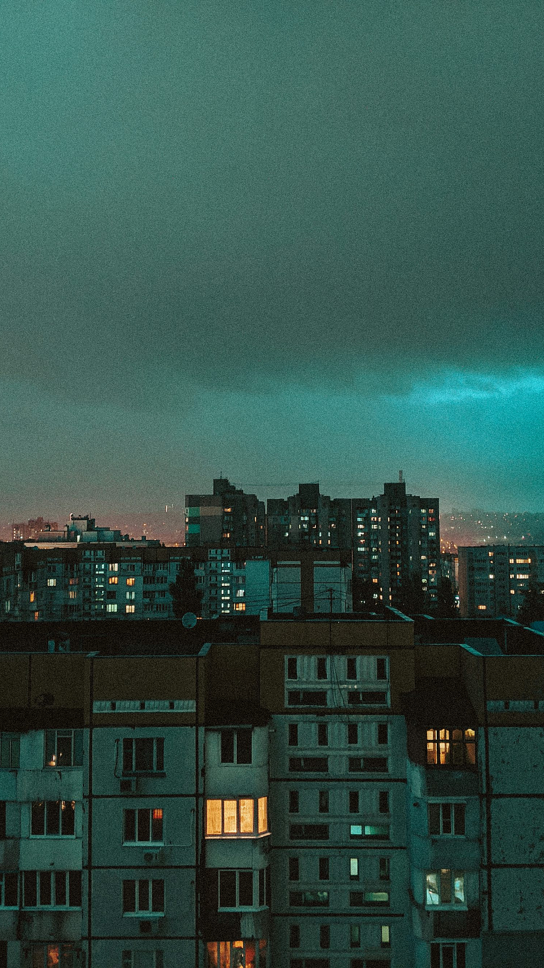 A stunning wallpaper featuring a brown and black concrete building set against a vibrant blue sky. The image offers a striking contrast of textures and colors.
