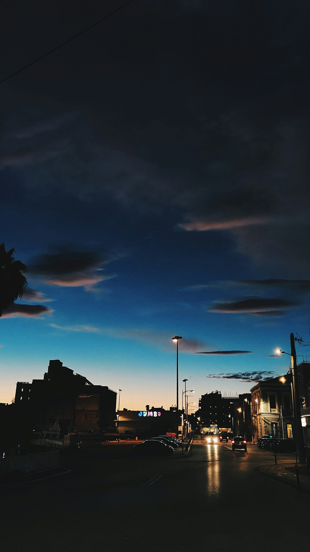 Experience the thrill of the night with this captivating wallpaper featuring cars speeding down a road under the glow of city lights. A perfect blend of urban energy and nocturnal beauty.