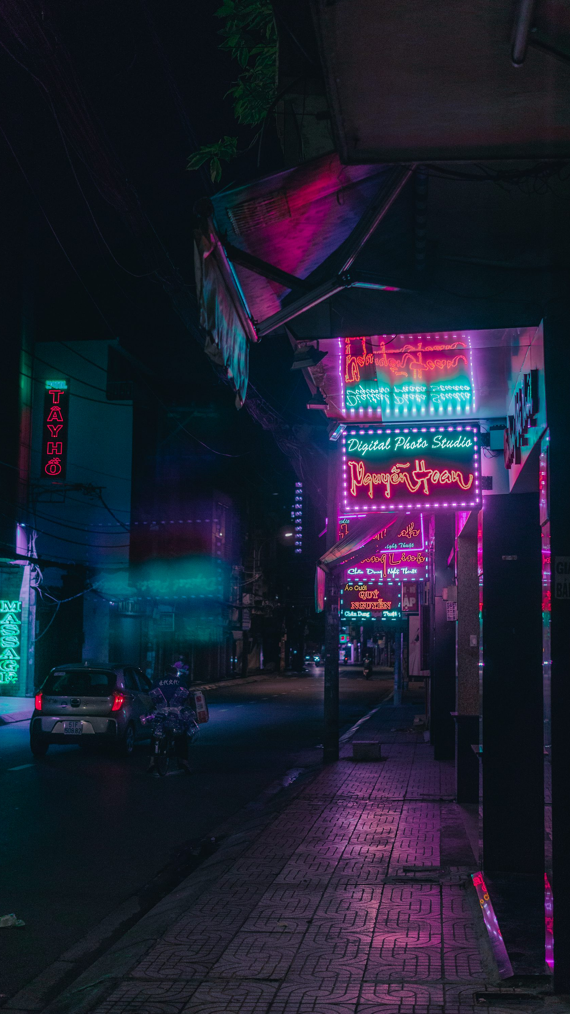 cars, night, parking, store, street, wallpaper, nighttime, vehicles, urban, city