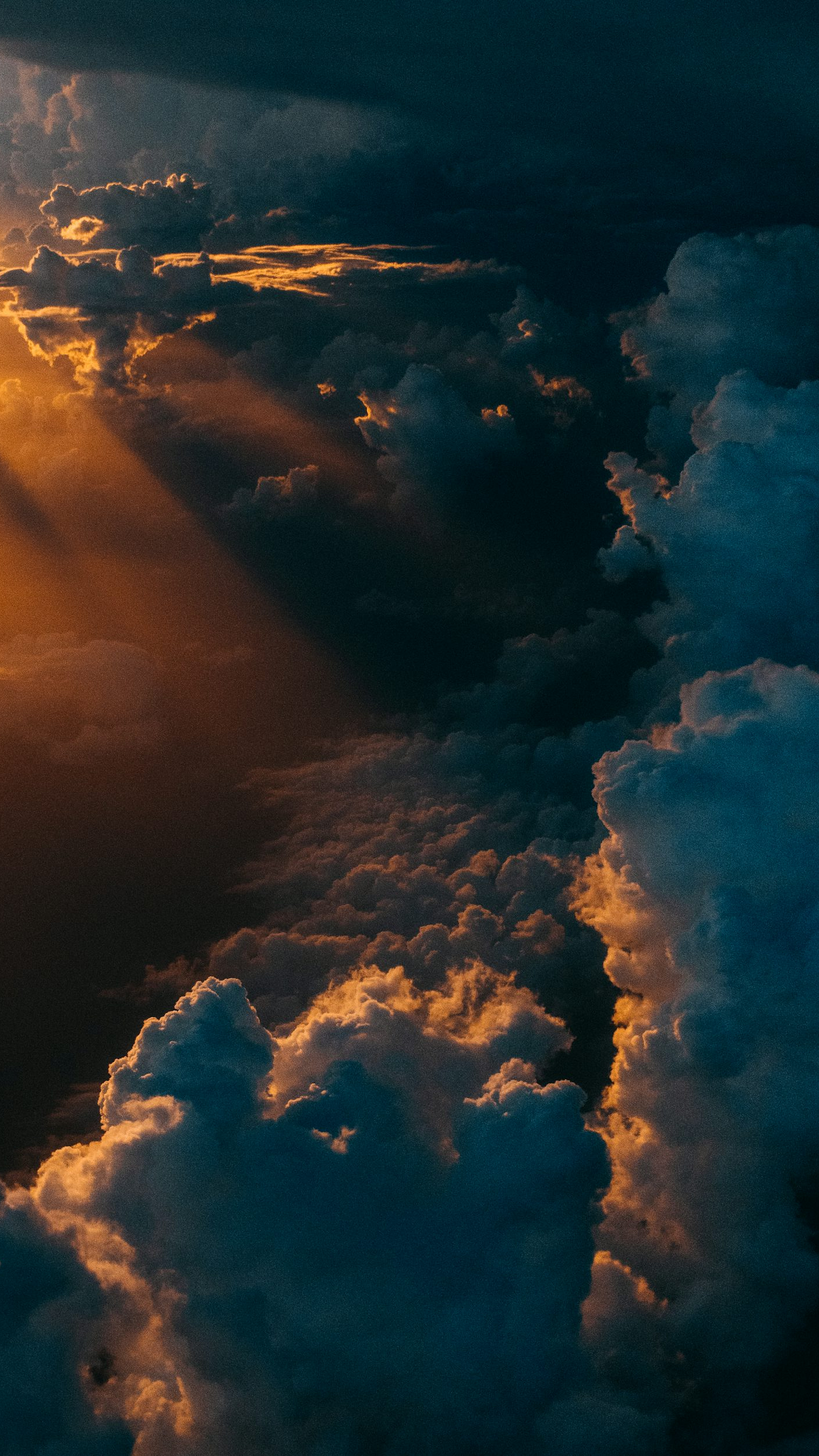 Experience the breathtaking beauty of clouds bathed in the warm, golden light of sunset or sunrise. This wallpaper captures the serene and magical atmosphere of this special time of day.