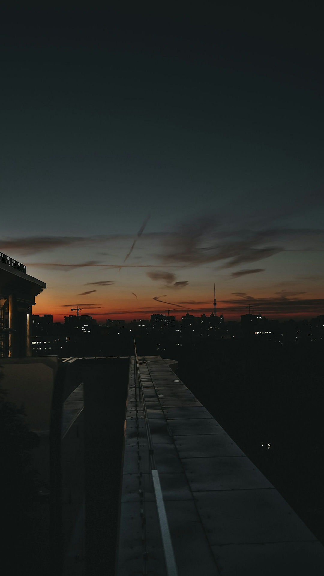 A stunning wallpaper featuring a gray concrete road stretching into the distance as the sun sets, casting a warm, inviting glow. Perfect for desktop or mobile backgrounds.