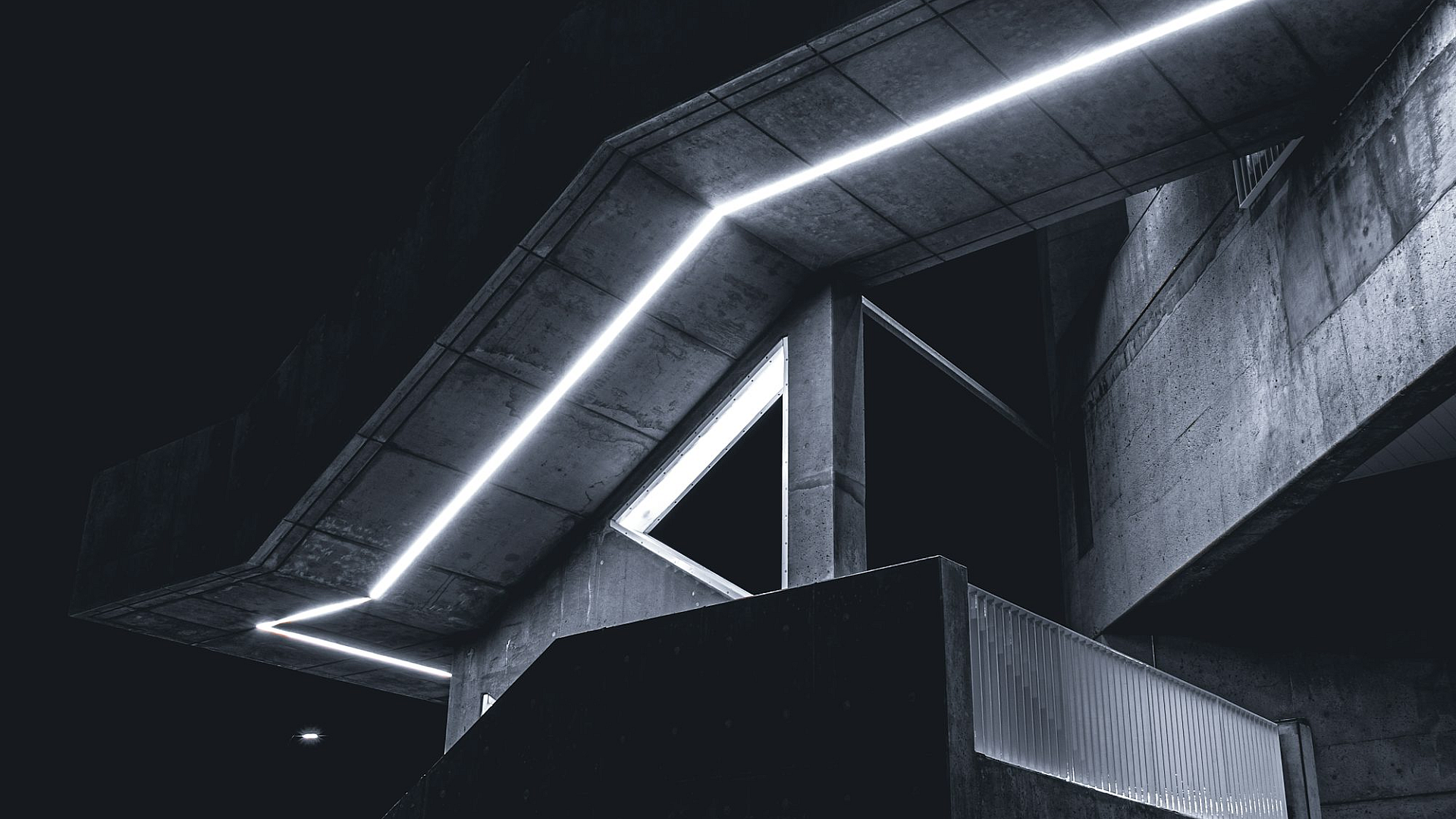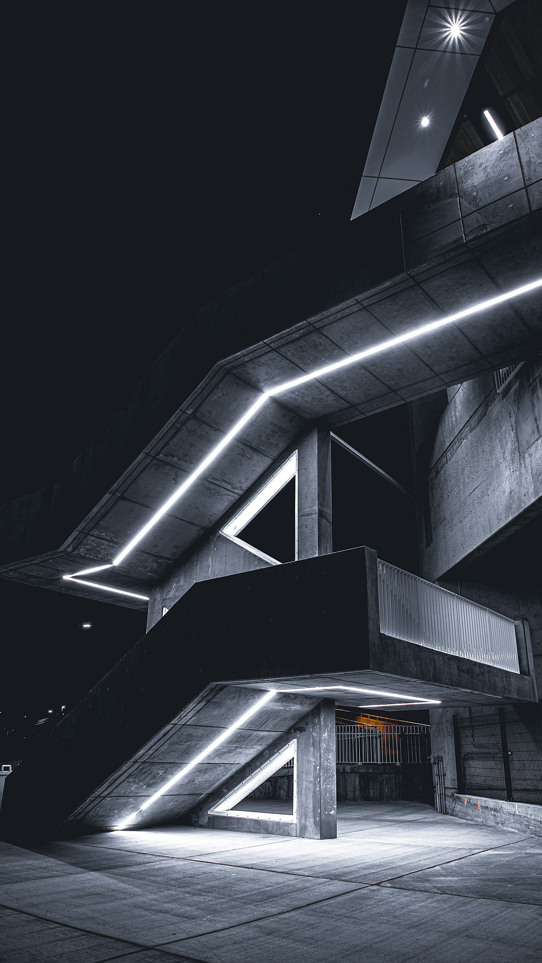 A striking grayscale image of a modern building, perfect as a minimalist wallpaper for your desktop or mobile device. The architecture is clean and compelling.