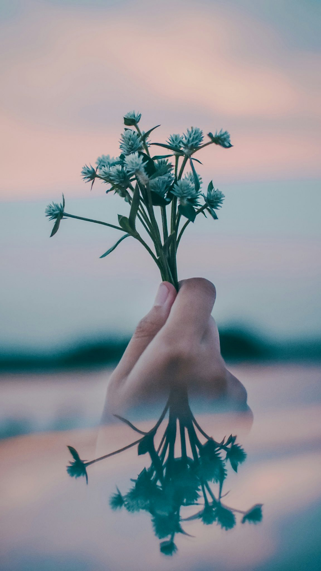 Enjoy this serene wallpaper featuring vibrant green leaves intertwined with delicate flowers, perfect for a calming and natural desktop or mobile background.