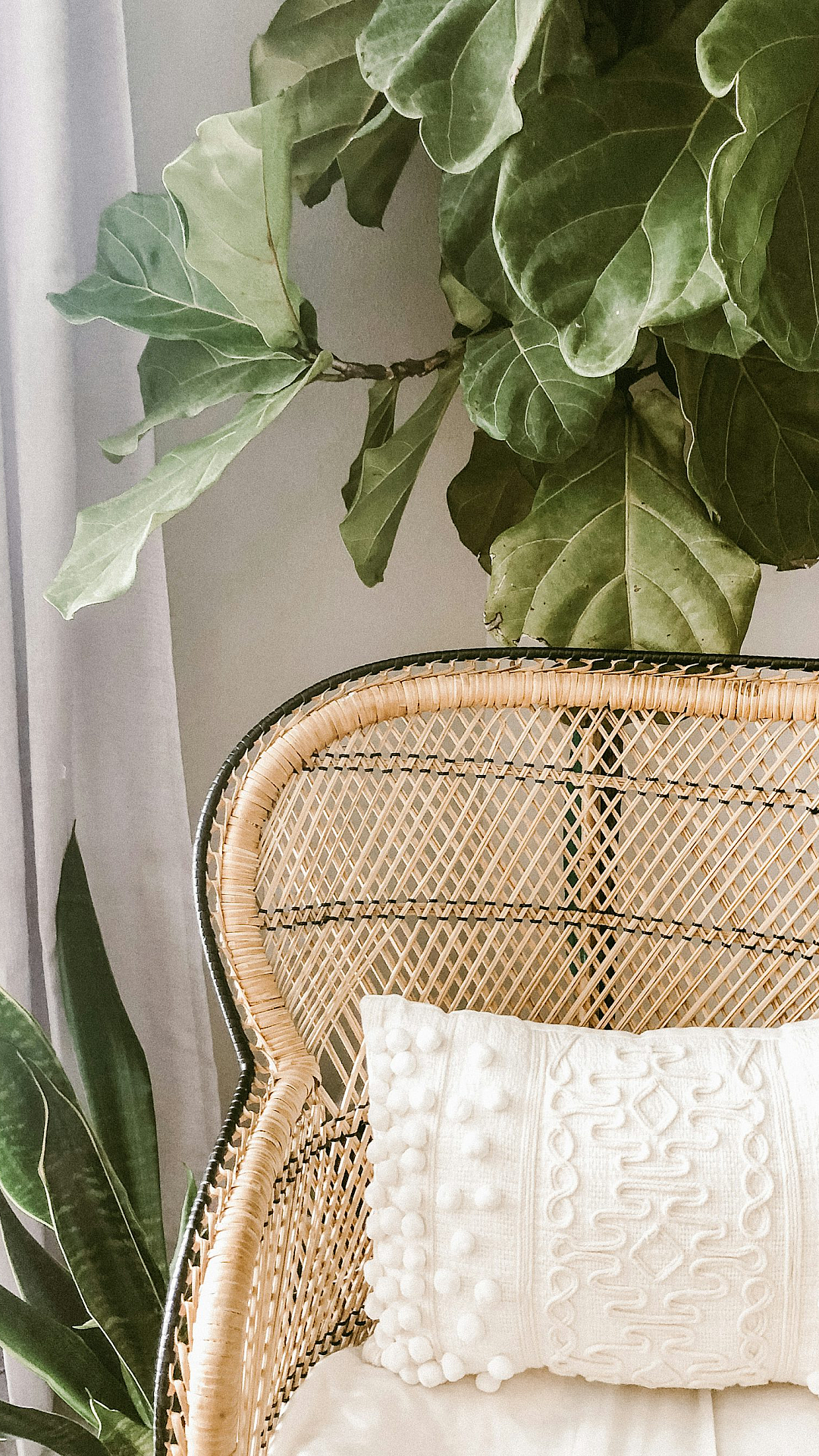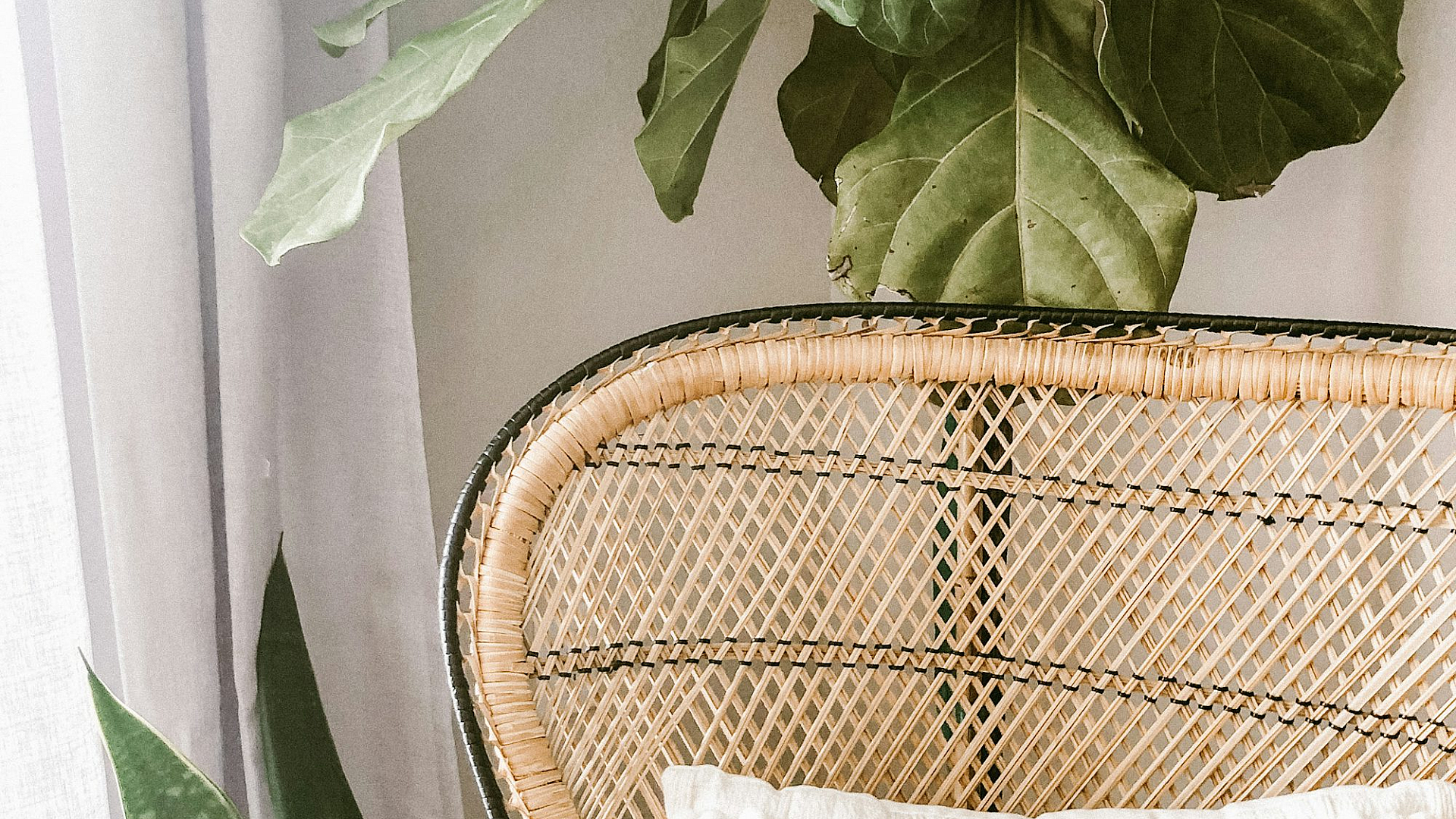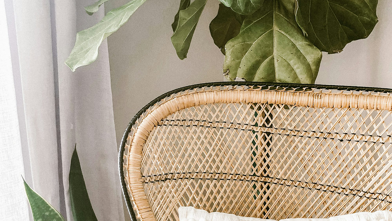 A serene image featuring a vibrant green plant nestled in a rustic brown woven basket. Perfect for a calming and natural desktop or phone background.