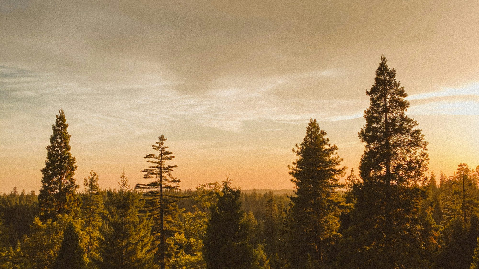 A serene wallpaper depicting lush green trees standing tall under a dramatic gray cloudy daytime sky. Perfect for a calming desktop background.