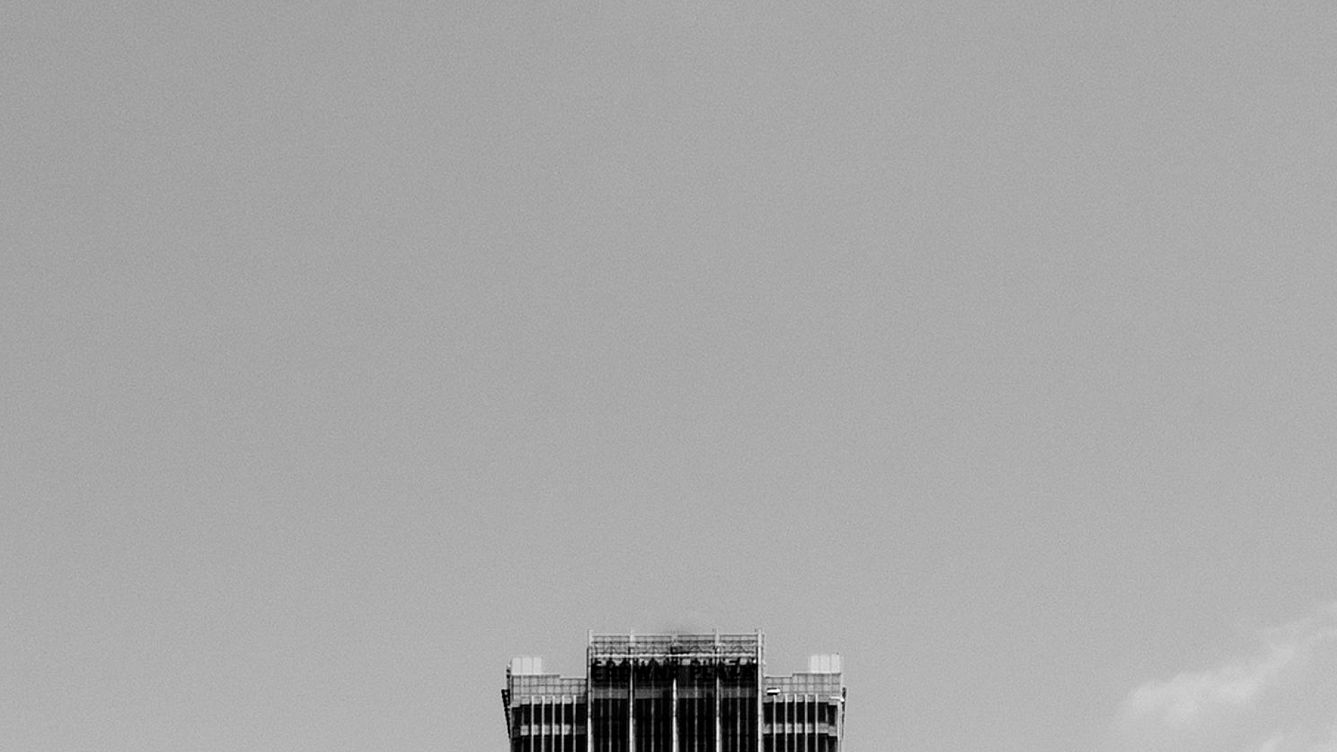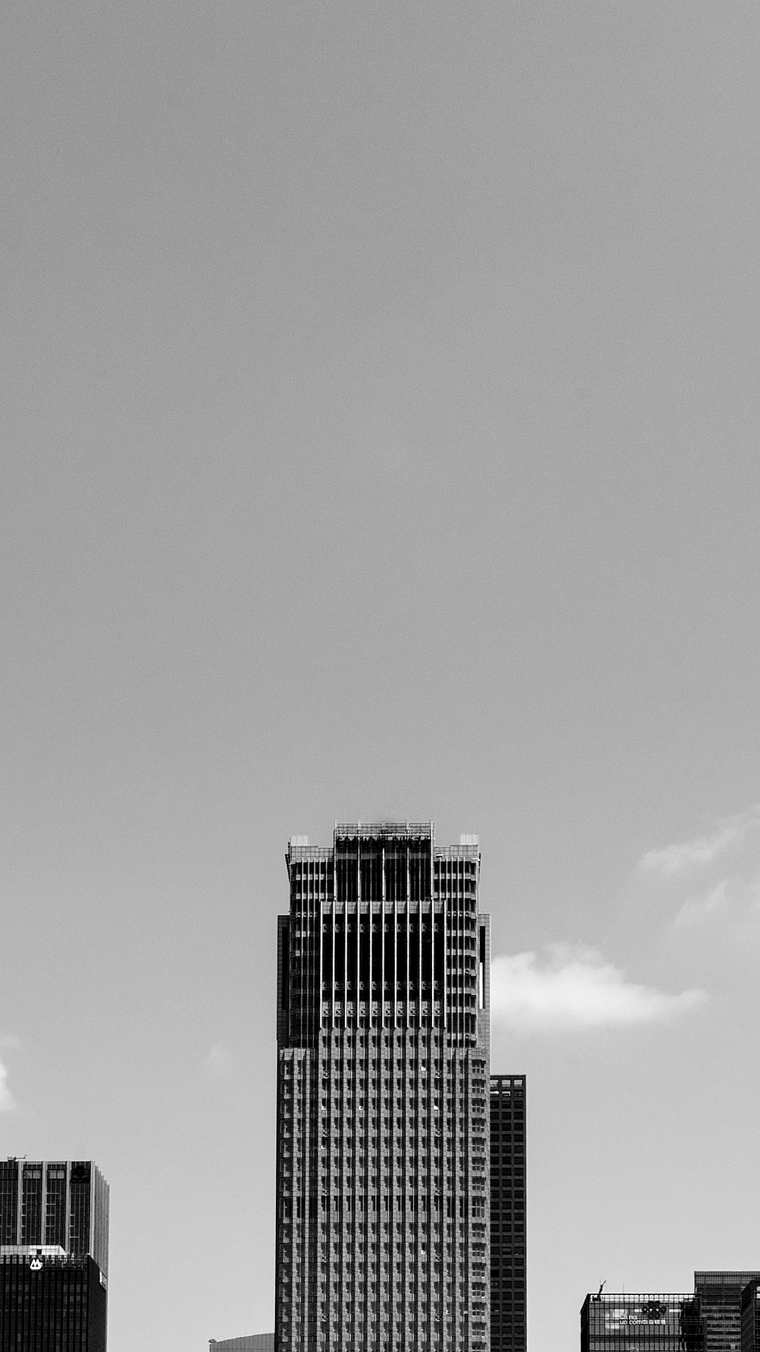 A dramatic wallpaper featuring a towering high rise building silhouetted against a moody gray sky. Perfect for a modern and urban aesthetic.