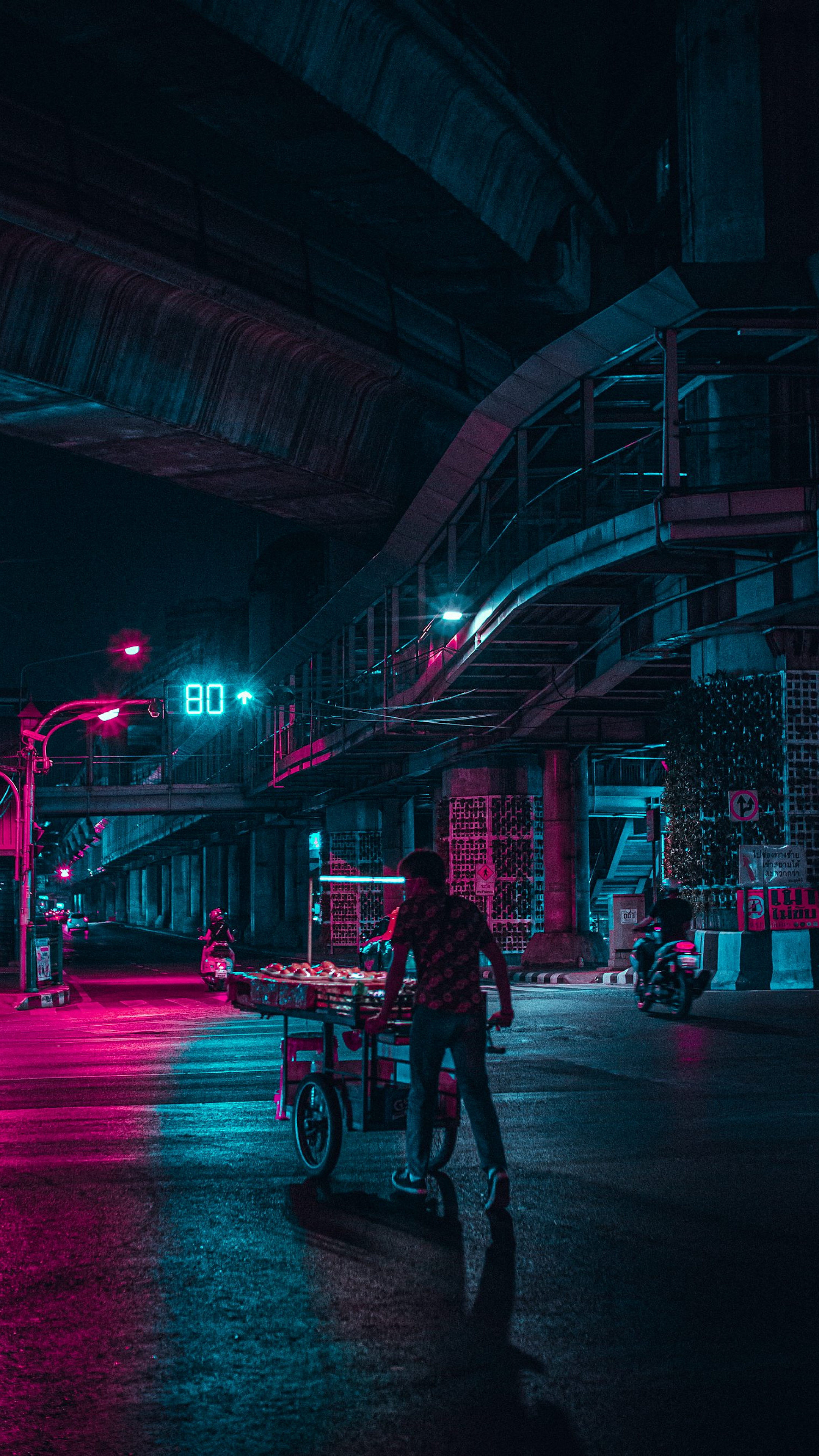 man, bicycle, night, road, black jacket, wallpaper, dark, city, riding, silhouette