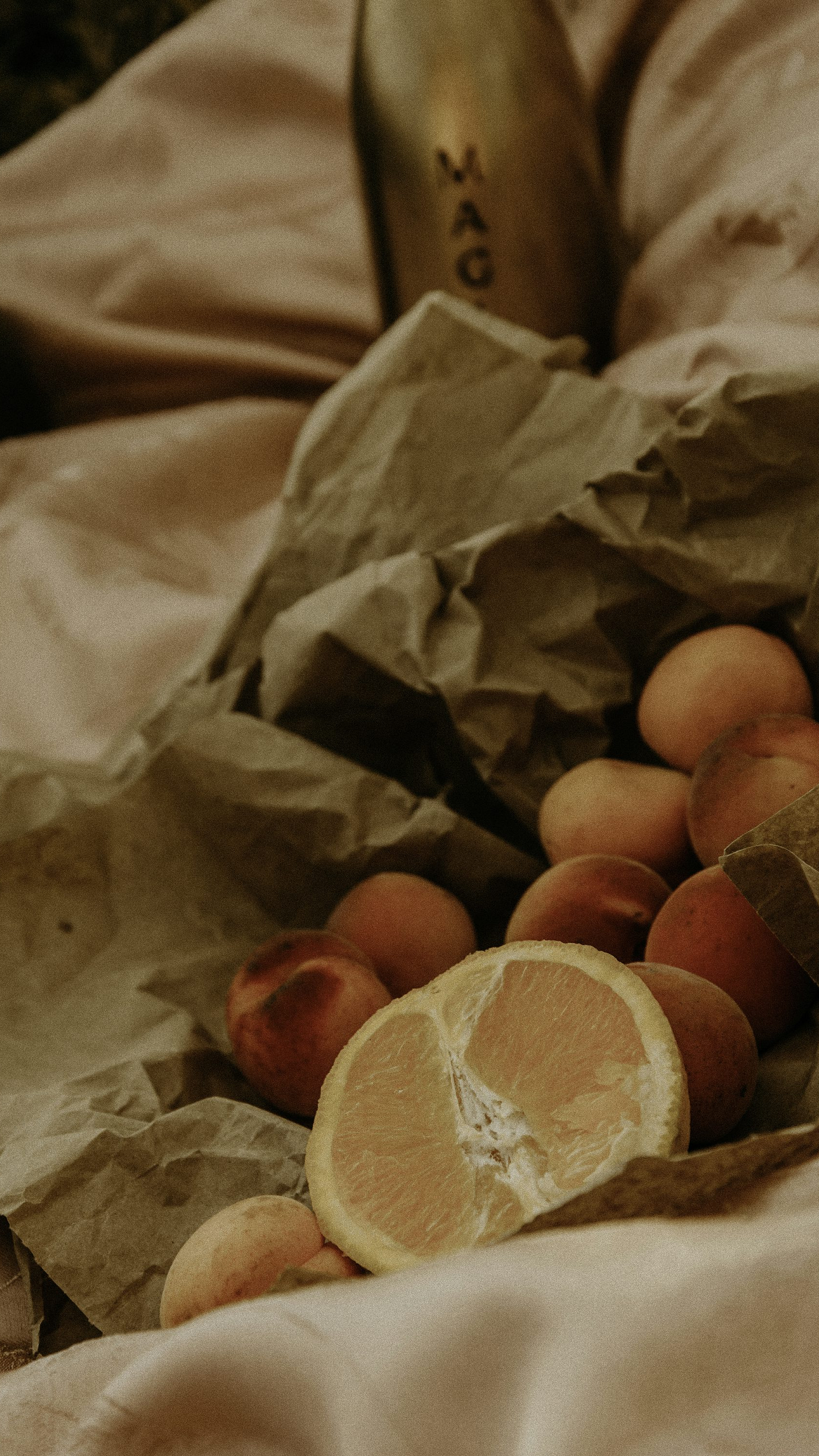 orange, fruit, brown paper, wallpaper, background, texture, minimalism, still life, citrus, food