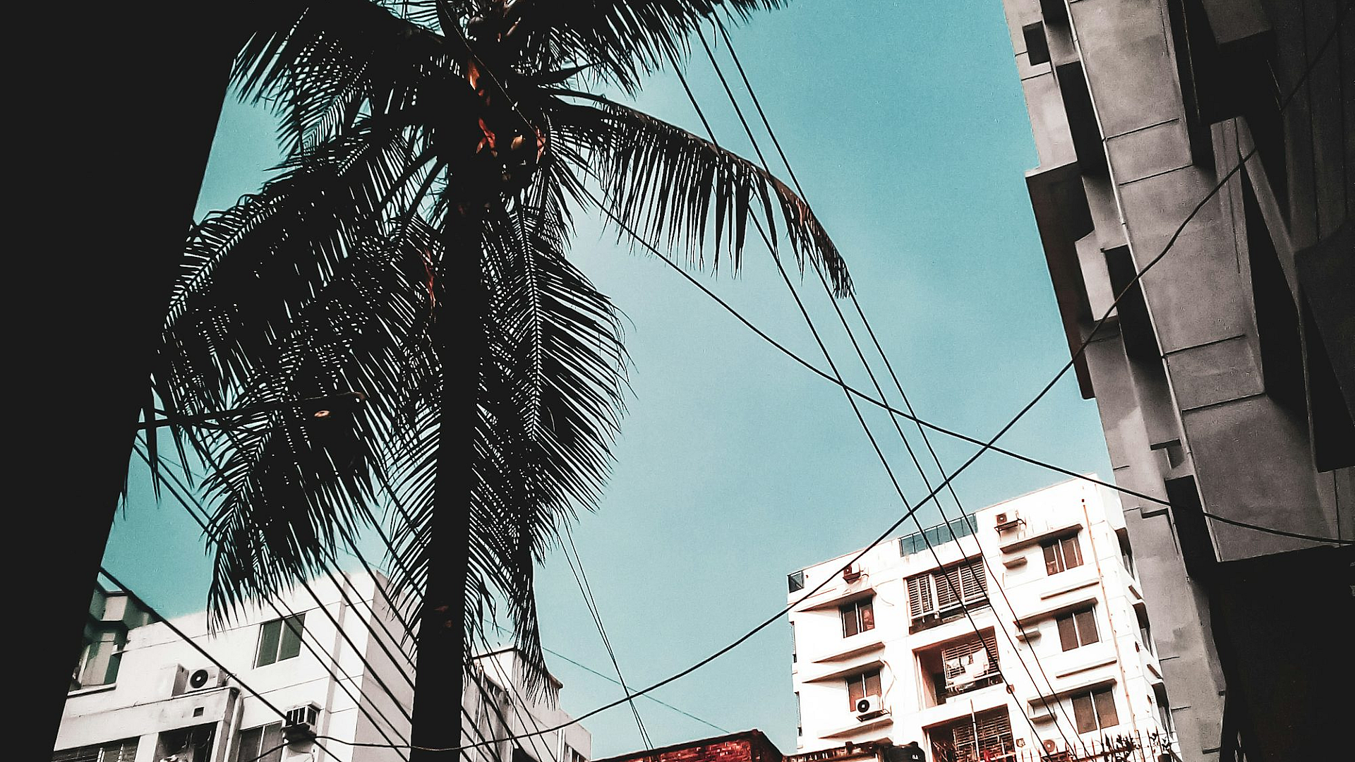 Wallpaper Palm Tree in the Middle of City Buildings
