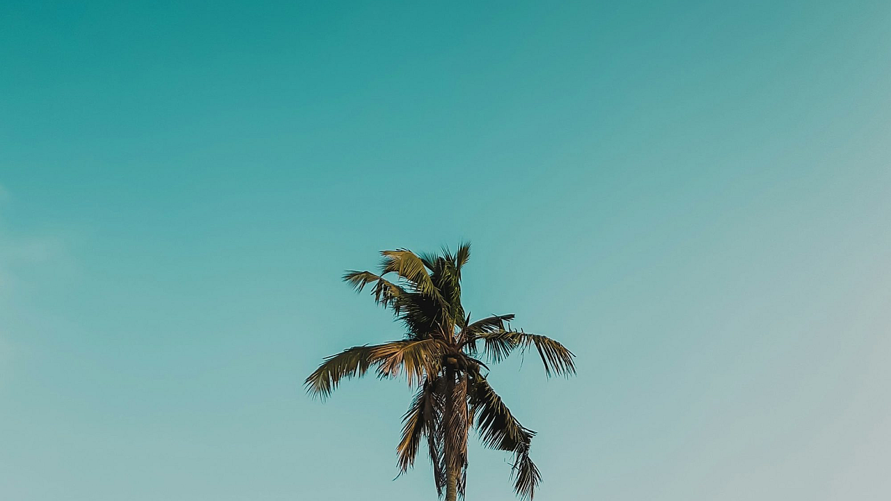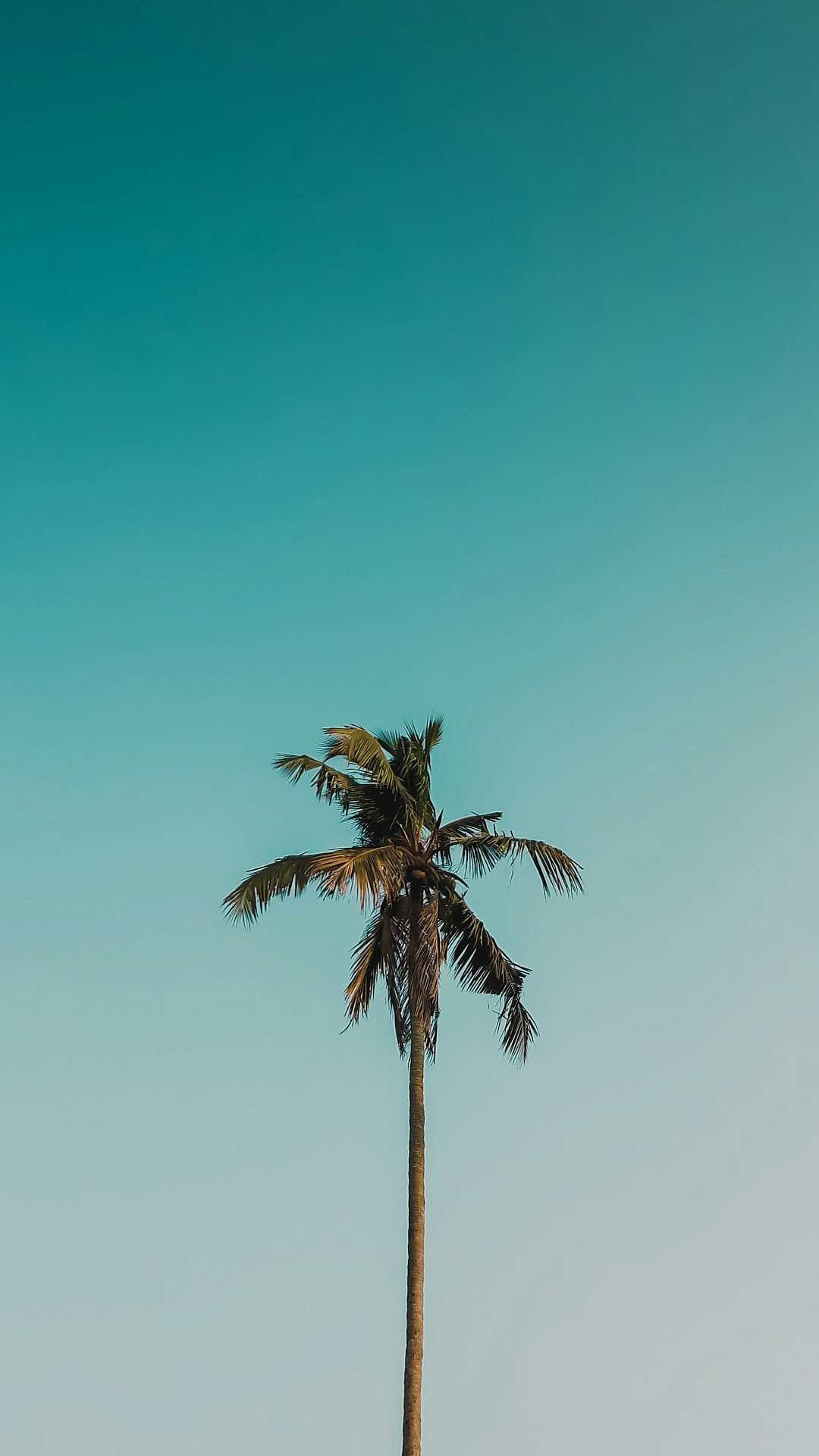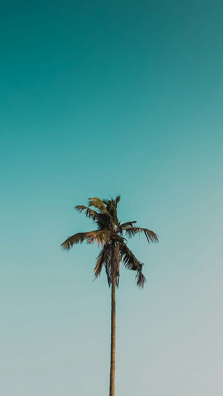 palm tree, blue sky, daytime, tropical, beach, summer, vacation, nature, wallpaper, background