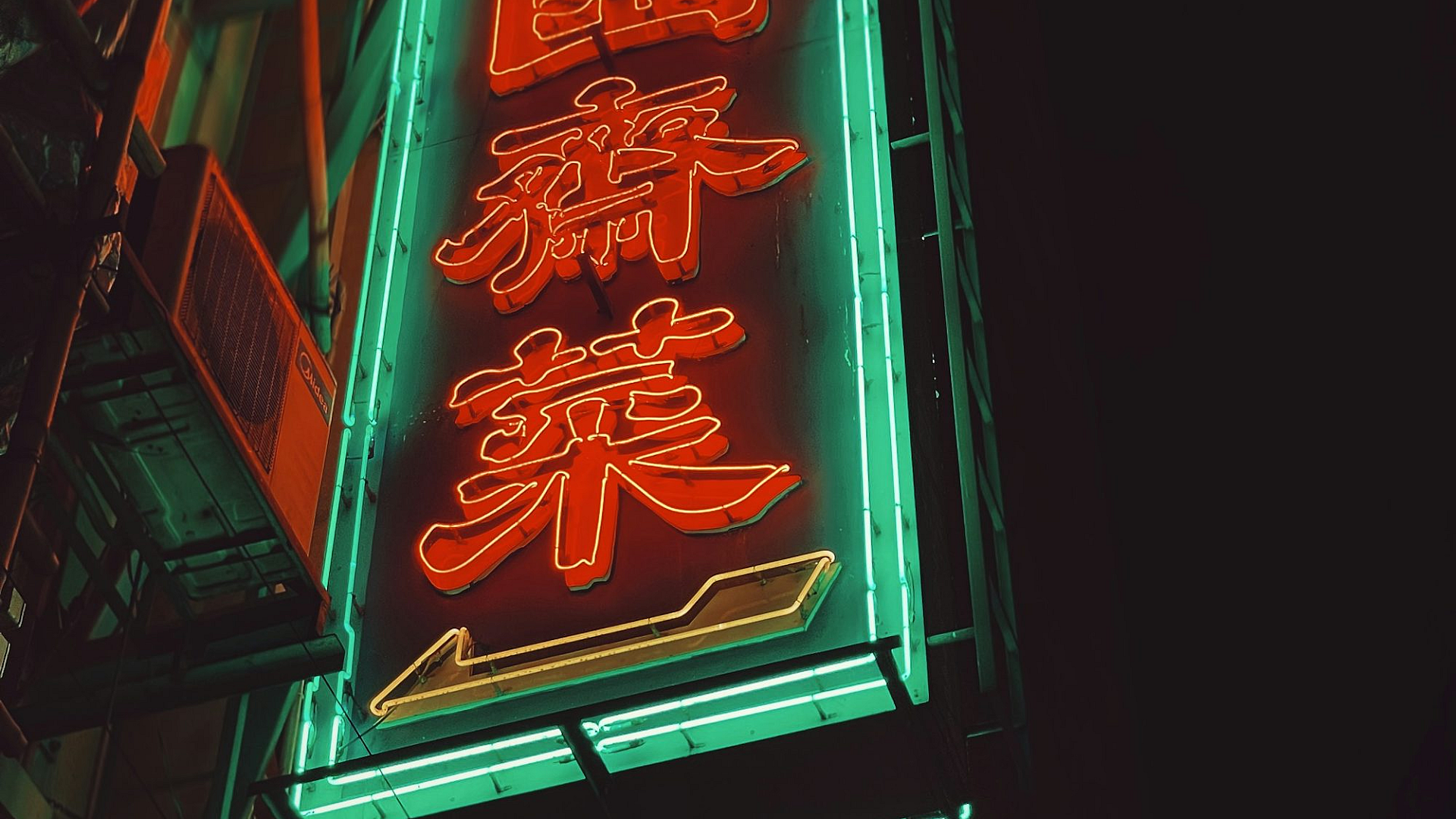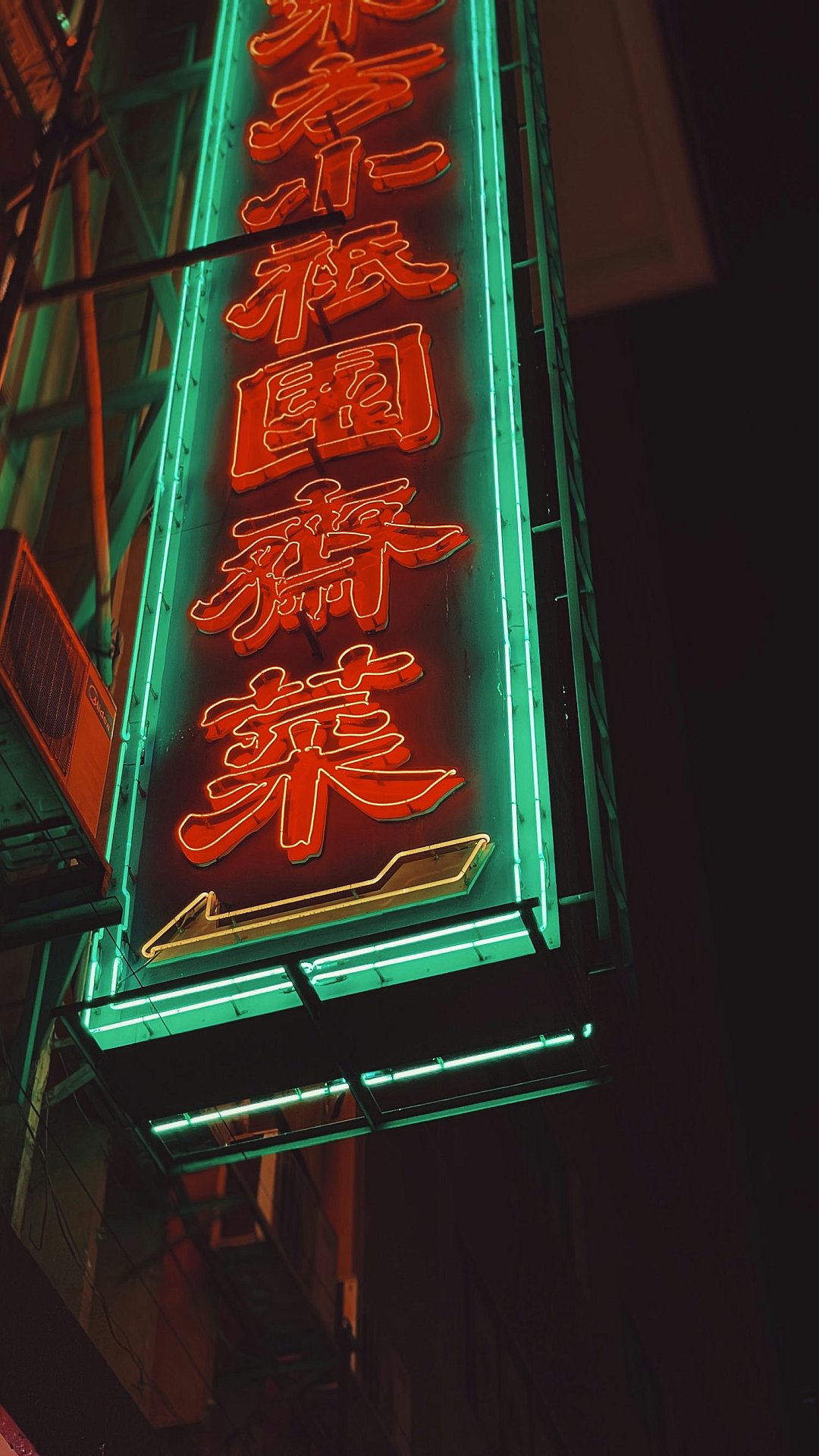 This wallpaper features a vibrant display of red and green LED signage, creating a dynamic and eye-catching visual. Perfect for tech-themed backgrounds.