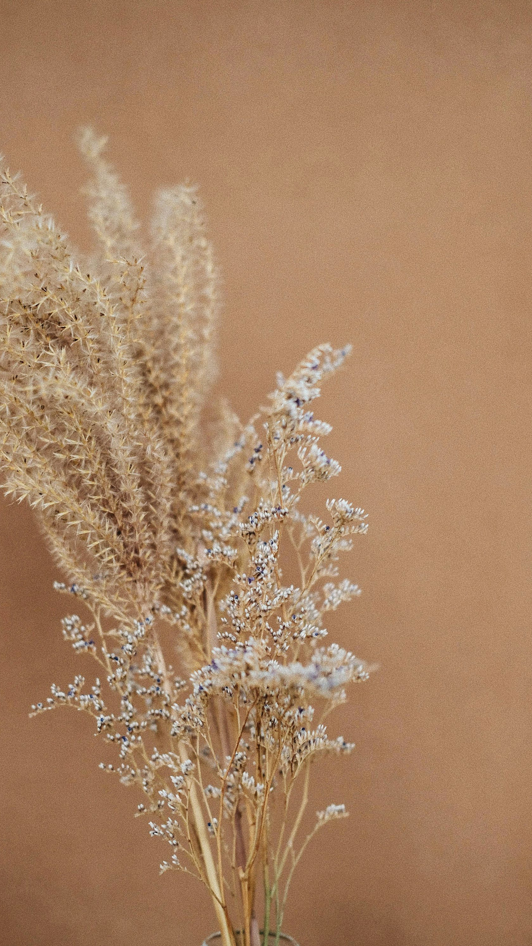 This wallpaper features a stunning shallow focus photograph of brown flowers, creating a beautiful and serene aesthetic. The soft focus emphasizes the delicate details.