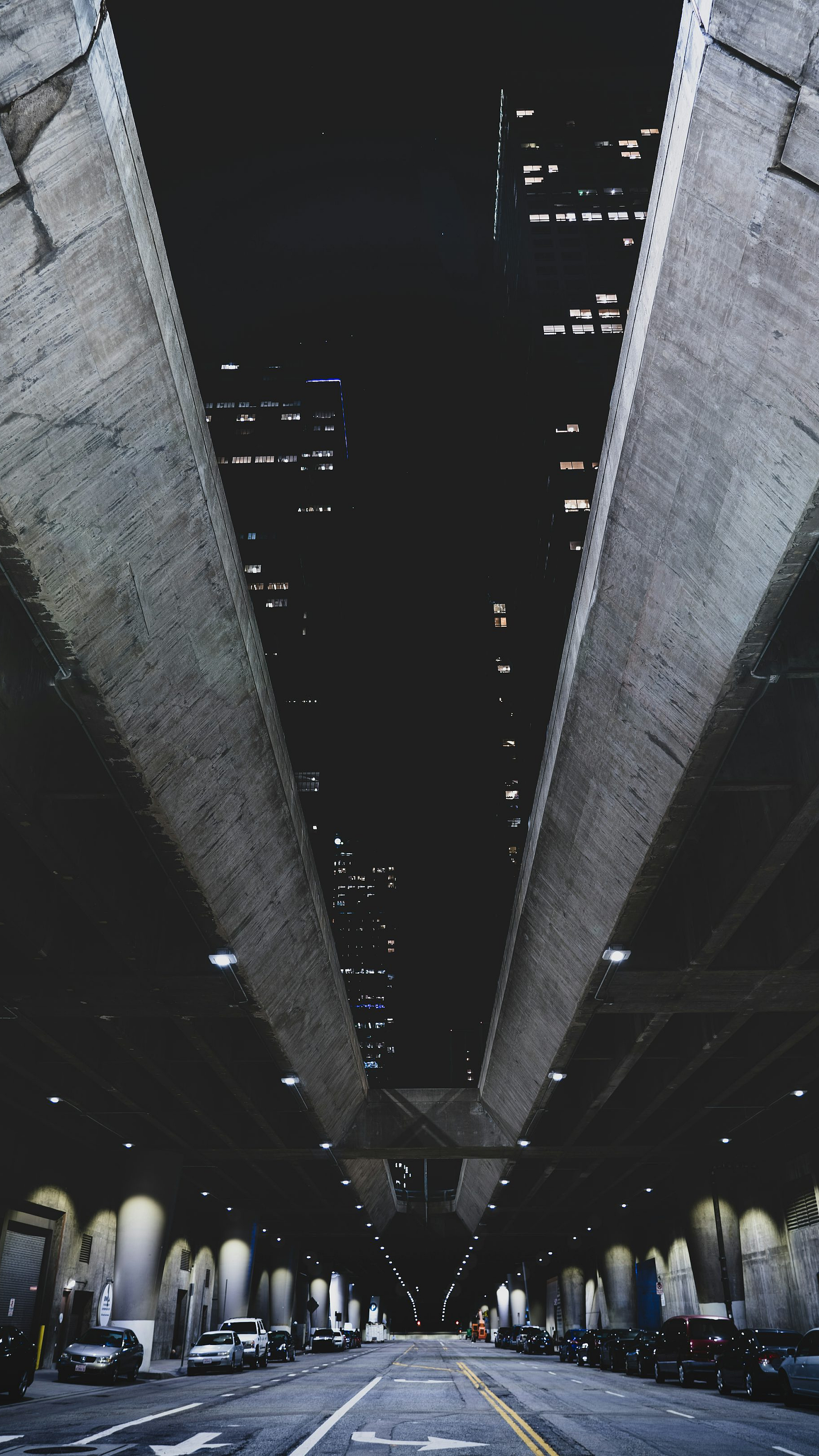 night, vehicles, parked, road, cars, street, city, darkness, lights, wallpaper