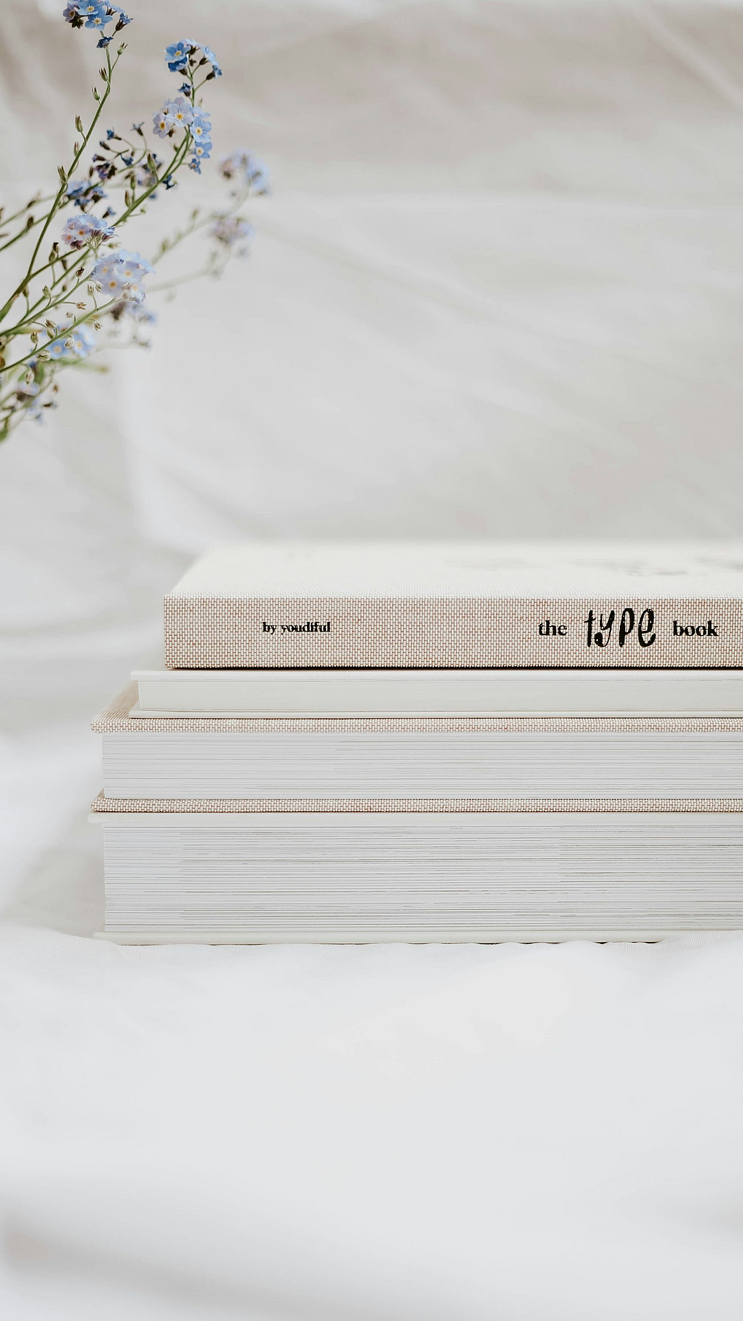 A minimalist wallpaper featuring a white and brown book resting on a white textile background. The image offers a clean and simple aesthetic.