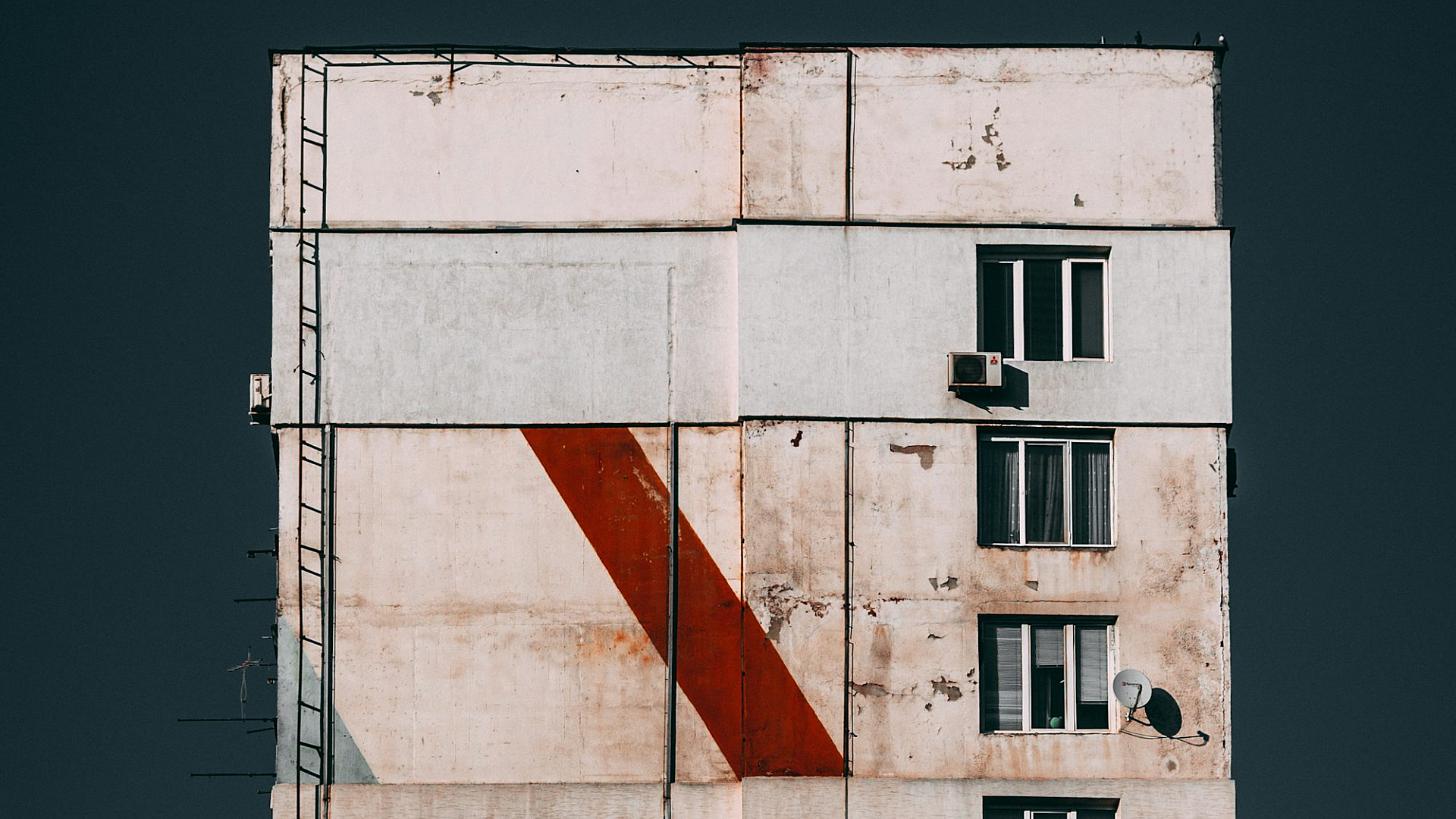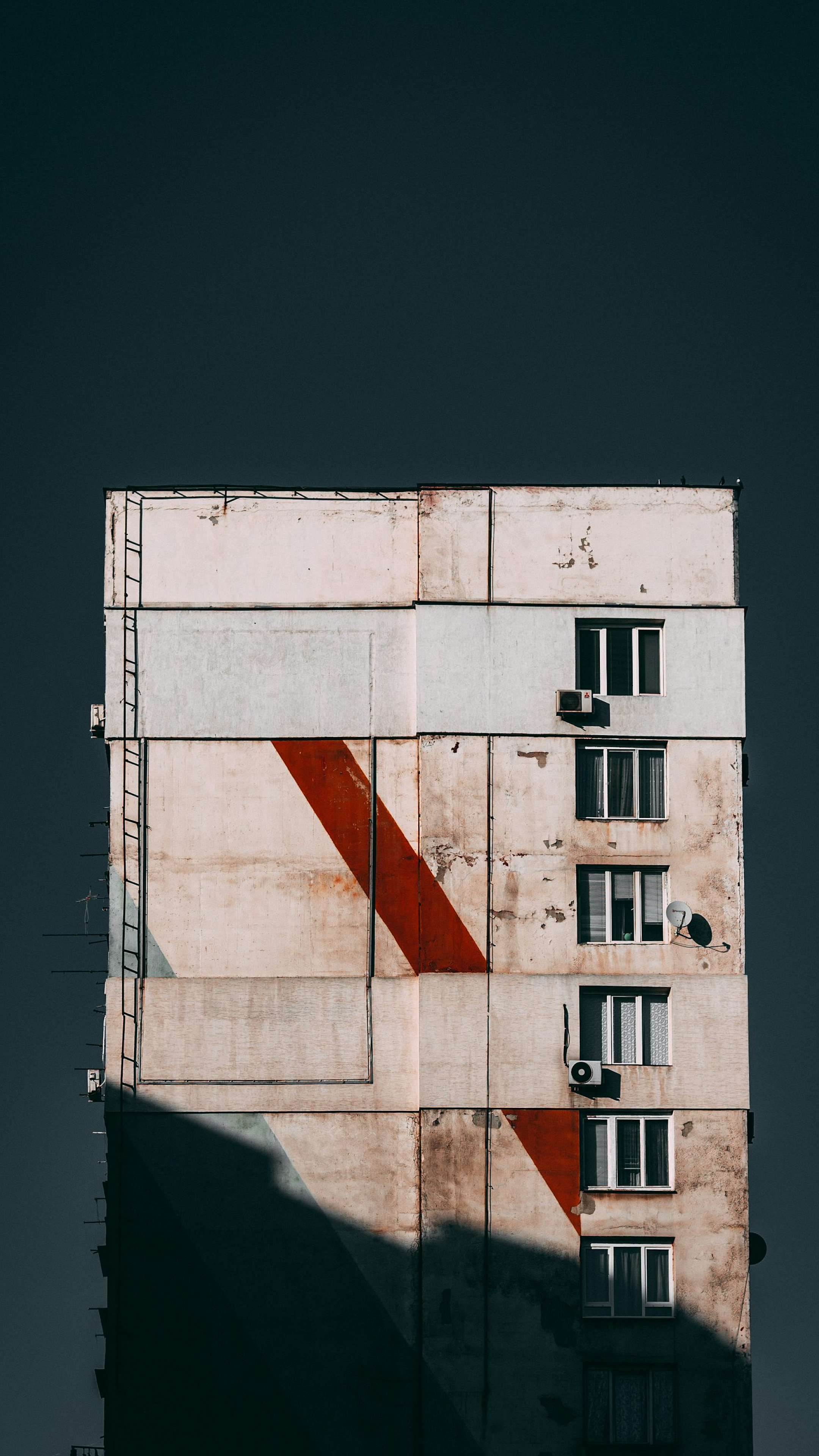 This wallpaper features a stunning image of a white and brown concrete building, offering a clean, modern aesthetic perfect for desktops or mobile devices. The texture and color contrast create a visually appealing design.