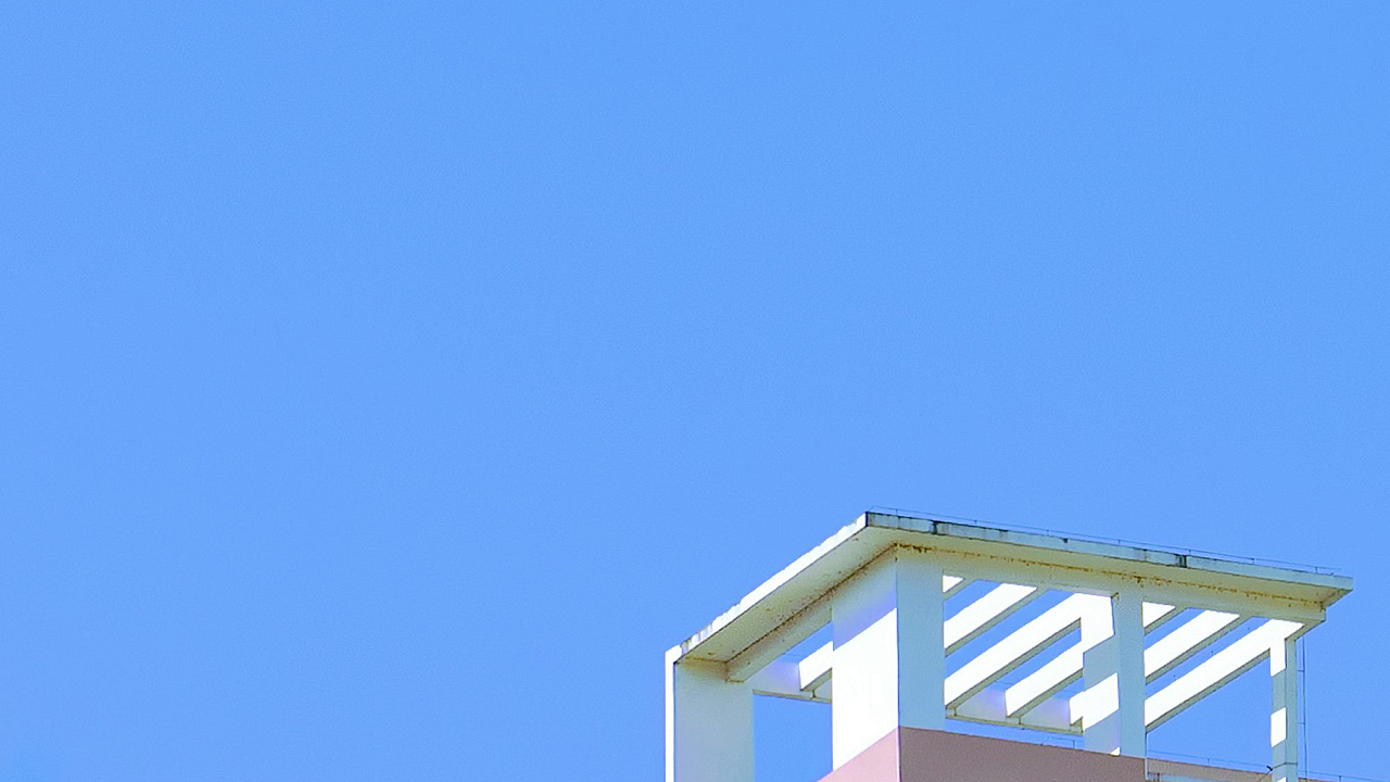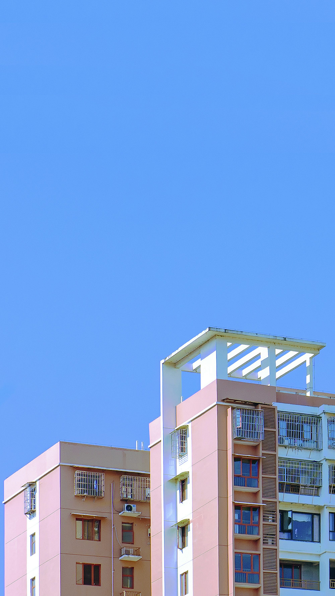 A stunning minimalist wallpaper featuring a white concrete building against a vibrant blue sky. Perfect for a modern aesthetic.