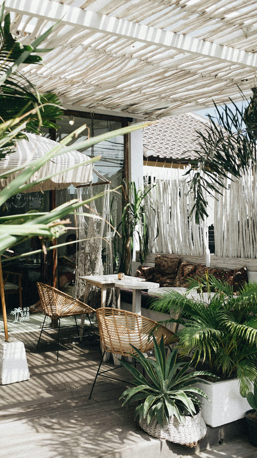 white table, brown wicker chair, plants, greenery, home decor, minimalist, simple, nature, interior, wallpaper
